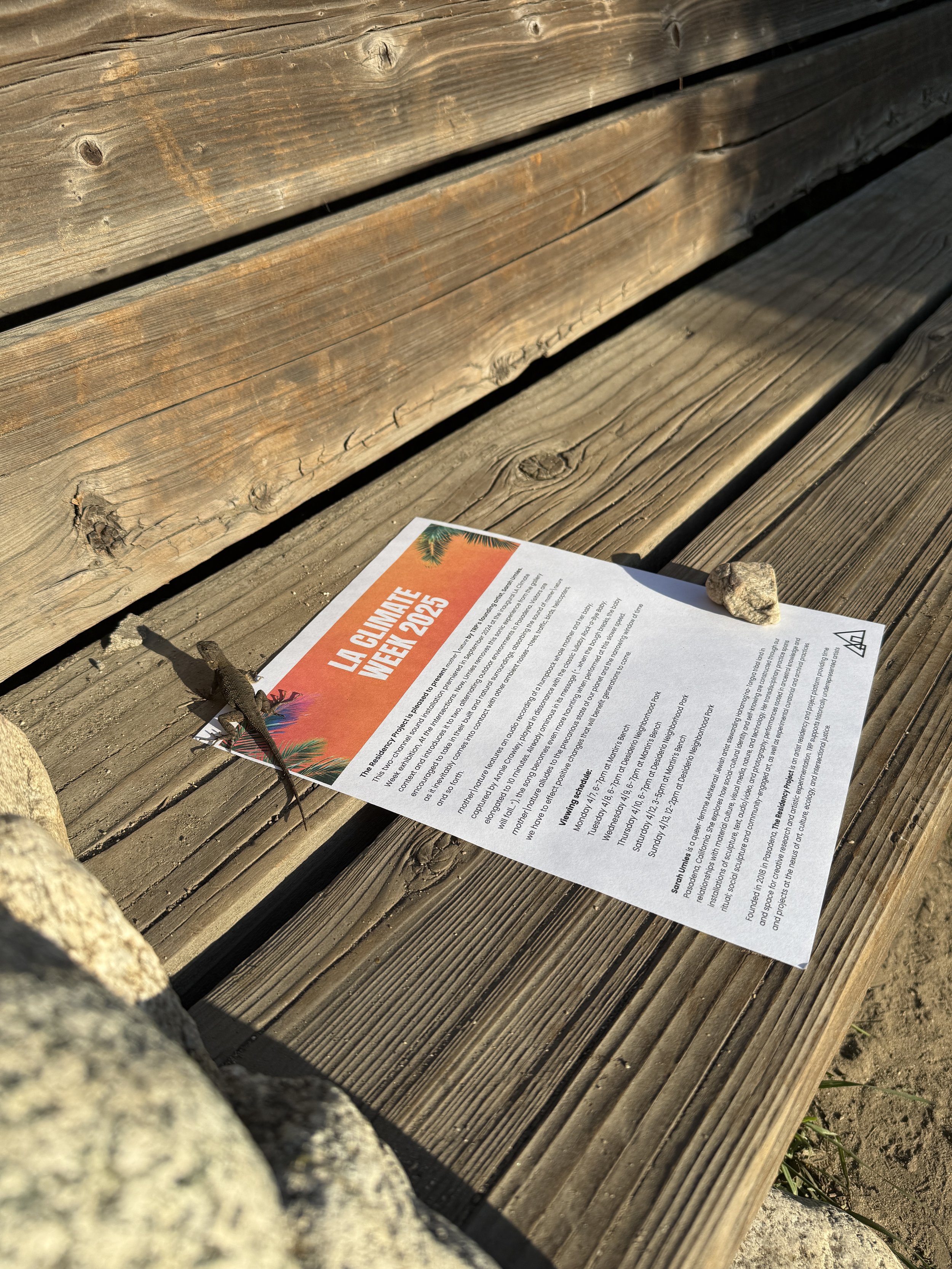 For the project’s site-specific iteration for LA Climate Week 2025, the work was installed in two public park locations along the Arroyo Seco LA River Watershed. Visitors to the sites were encouraged to take in their built and natural surroundings, absorbing the sound of mother\nature as it inevitably came into contact with other ambient noises: trees, traffic, birds, helicopters, and so forth.