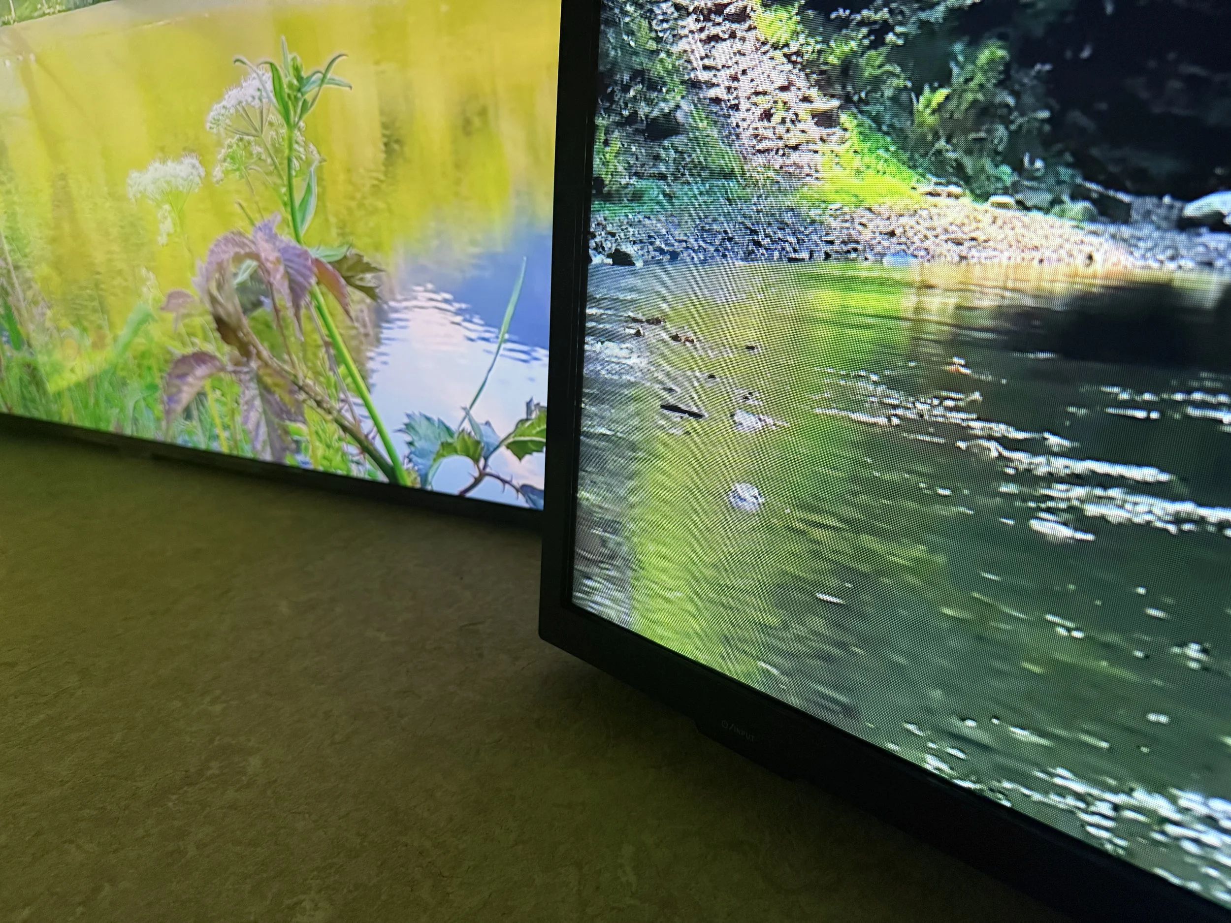 Through cacophonous sound and imagery, "Simulacra Landscape" highlights the perverseness of seeking out the healing qualities of nature through screen-based experiences. Various monitors align to form a dystopian horizon line. Videos in the installation play directly from YouTube channels with names like "Healing Nature & Meditation" and "Healing Nature Society—content which is all part of a fairly recent internet phenomenon; that is: the proliferation of “relaxing” nature videos, with some having over 45 million views. Many of the found videos feature actual footage while others were, even more perversely, produced using AI technology. "Simulacra Landscape" interrogates the role of emergent technologies and begs the question of who/what is (or is not...) being healed when we say "healing nature."